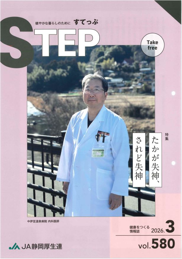 静岡県厚生連 広報誌「すてっぷ2026年3月号」を掲載しました 2026 3/05 特集 「たかが神経、されど神経」神経調節性失神について おうち de 体操 「健康寿命を延ばす」「眠りの新習慣」 病院に聞いてみました「帯状疱疹はどんな病気ですか?」 News & Topics JA女性部役員とJA静岡厚生連との意見交換会他 健康食彩レシピ「ブロッコリーとツナのレンジオイル蒸し」 すてっぷ2026年3月号はこちらから→ 広報関係・年報 → トピックス